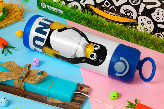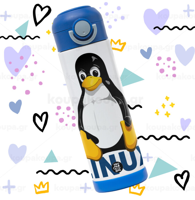 Linux, Πασχαλινή Λαμπάδα με Παιδικό παγούρι θερμό, ανοξείδωτο, με καλαμάκι ασφαλείας, ΜΠΛΕ (500ml)