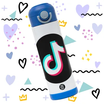 TikTok, Πασχαλινή Λαμπάδα με Παιδικό παγούρι θερμό, ανοξείδωτο, με καλαμάκι ασφαλείας, ΜΠΛΕ (500ml)