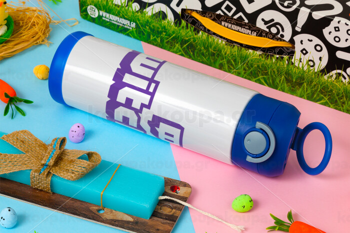 Twitch, Πασχαλινή Λαμπάδα με Παιδικό παγούρι θερμό, ανοξείδωτο, με καλαμάκι ασφαλείας, ΜΠΛΕ (500ml)
