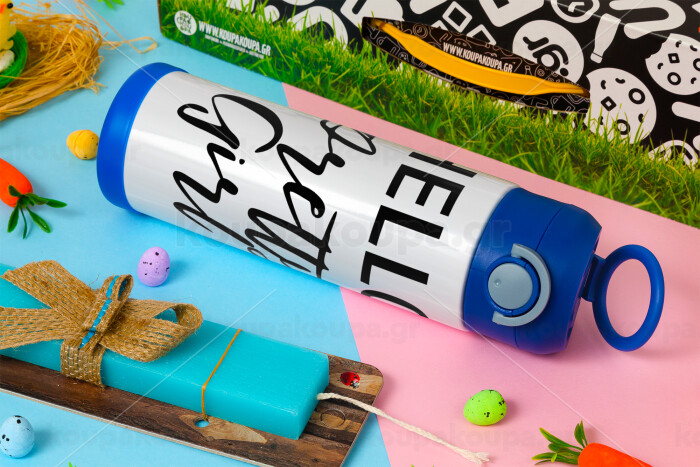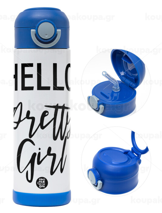 Hello pretty girl, Πασχαλινή Λαμπάδα με Παιδικό παγούρι θερμό, ανοξείδωτο, με καλαμάκι ασφαλείας, ΜΠΛΕ (500ml)