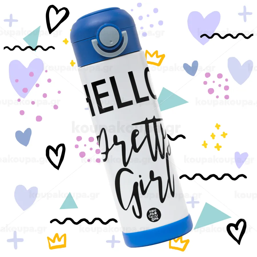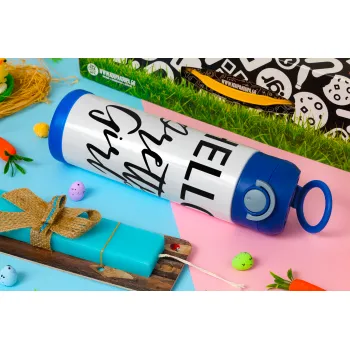 Hello pretty girl, Πασχαλινή Λαμπάδα με Παιδικό παγούρι θερμό, ανοξείδωτο, με καλαμάκι ασφαλείας, ΜΠΛΕ (500ml)