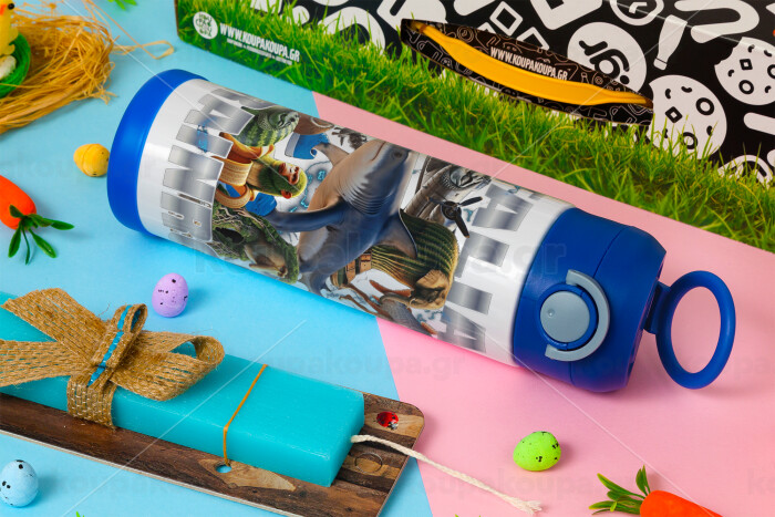 Italian Brainrot, Πασχαλινή Λαμπάδα με Παιδικό παγούρι θερμό, ανοξείδωτο, με καλαμάκι ασφαλείας, ΜΠΛΕ (500ml)