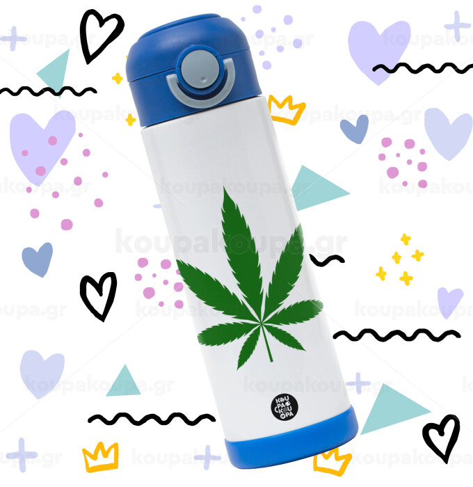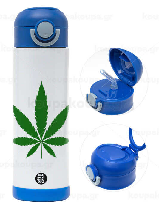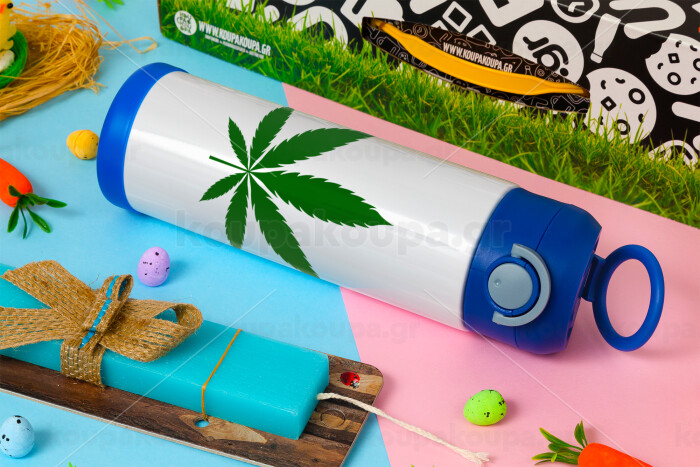 Weed, Πασχαλινή Λαμπάδα με Παιδικό παγούρι θερμό, ανοξείδωτο, με καλαμάκι ασφαλείας, ΜΠΛΕ (500ml)