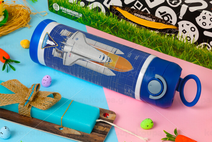 Nasa Space Shuttle, Πασχαλινή Λαμπάδα με Παιδικό παγούρι θερμό, ανοξείδωτο, με καλαμάκι ασφαλείας, ΜΠΛΕ (500ml)
