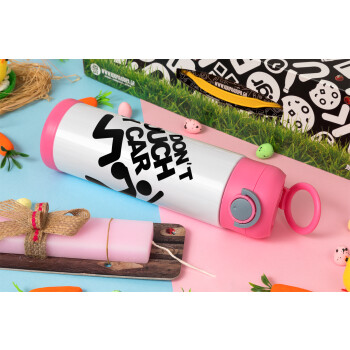 Don't touch my car, Πασχαλινή Λαμπάδα με Παιδικό παγούρι θερμό, ανοξείδωτο, με καλαμάκι ασφαλείας, ΡΟΖ (500ml)