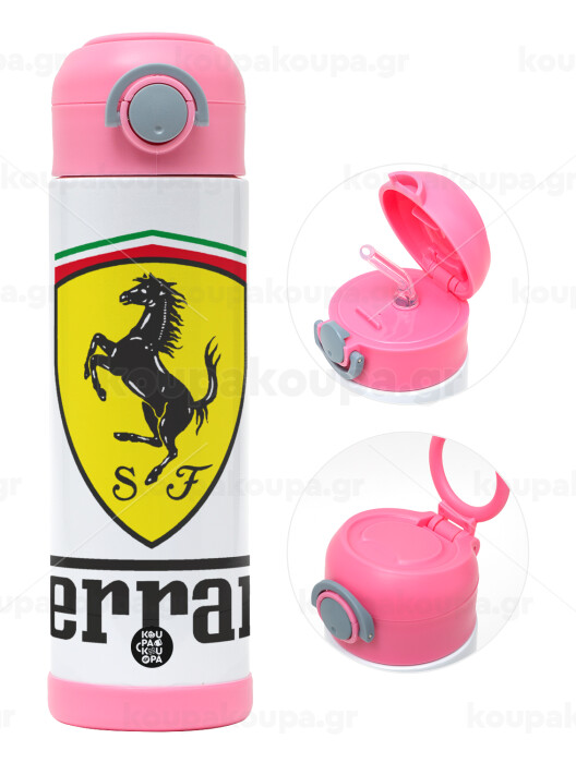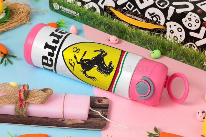 Ferrari S.p.A., Πασχαλινή Λαμπάδα με Παιδικό παγούρι θερμό, ανοξείδωτο, με καλαμάκι ασφαλείας, ΡΟΖ (500ml)