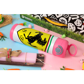 Ferrari, Πασχαλινή Λαμπάδα με Παιδικό παγούρι θερμό, ανοξείδωτο, με καλαμάκι ασφαλείας, ΡΟΖ (500ml)