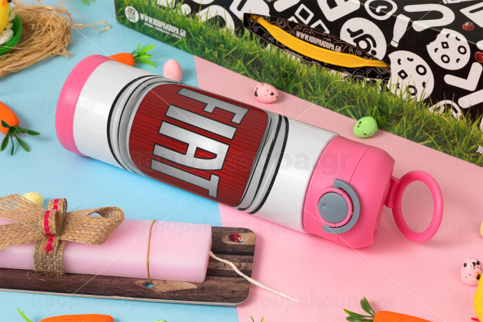FIAT, Πασχαλινή Λαμπάδα με Παιδικό παγούρι θερμό, ανοξείδωτο, με καλαμάκι ασφαλείας, ΡΟΖ (500ml)