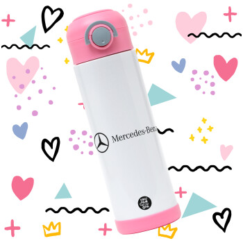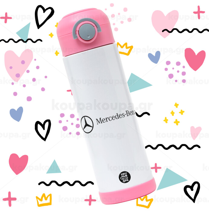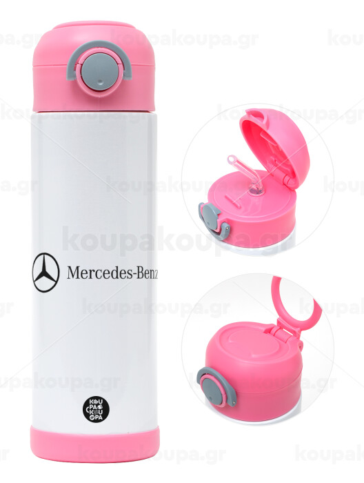 Mercedes small logo, Πασχαλινή Λαμπάδα με Παιδικό παγούρι θερμό, ανοξείδωτο, με καλαμάκι ασφαλείας, ΡΟΖ (500ml)