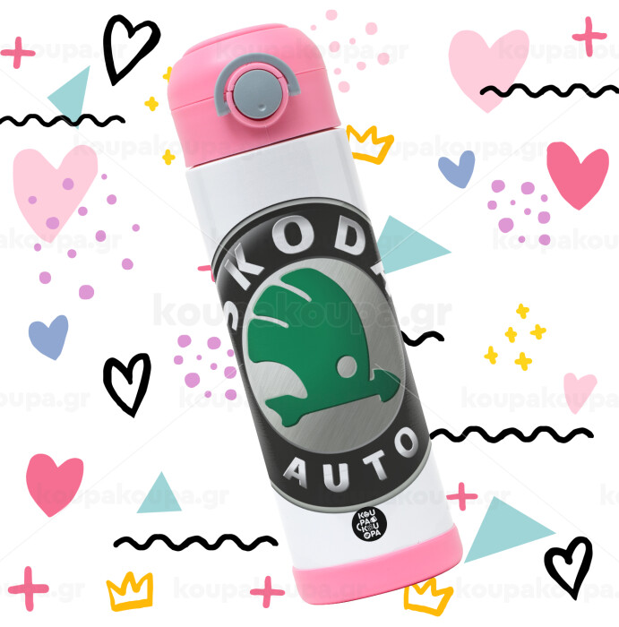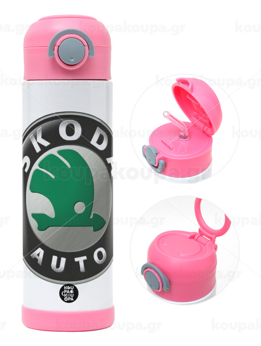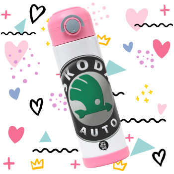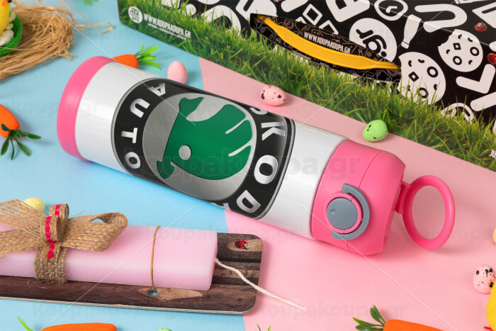 SKODA, Πασχαλινή Λαμπάδα με Παιδικό παγούρι θερμό, ανοξείδωτο, με καλαμάκι ασφαλείας, ΡΟΖ (500ml)