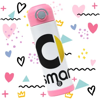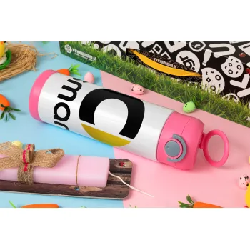 smart, Πασχαλινή Λαμπάδα με Παιδικό παγούρι θερμό, ανοξείδωτο, με καλαμάκι ασφαλείας, ΡΟΖ (500ml)
