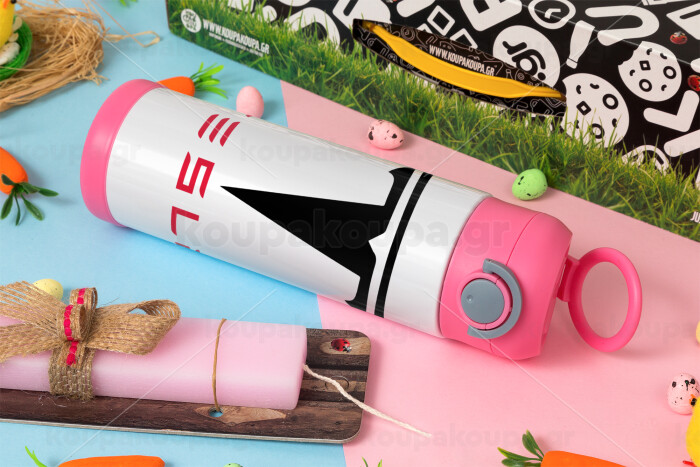 Tesla motors, Πασχαλινή Λαμπάδα με Παιδικό παγούρι θερμό, ανοξείδωτο, με καλαμάκι ασφαλείας, ΡΟΖ (500ml)