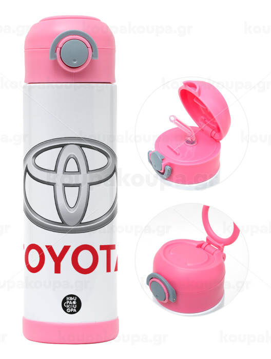 Toyota, Πασχαλινή Λαμπάδα με Παιδικό παγούρι θερμό, ανοξείδωτο, με καλαμάκι ασφαλείας, ΡΟΖ (500ml)