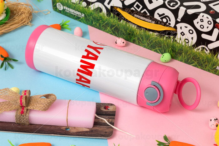 Yamaha, Πασχαλινή Λαμπάδα με Παιδικό παγούρι θερμό, ανοξείδωτο, με καλαμάκι ασφαλείας, ΡΟΖ (500ml)