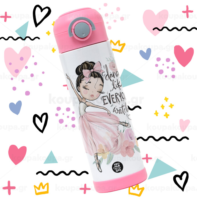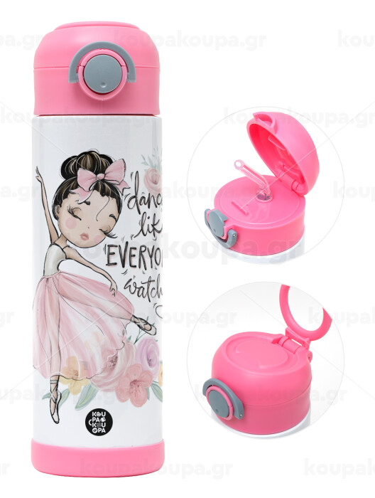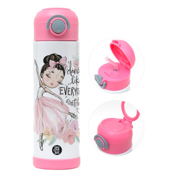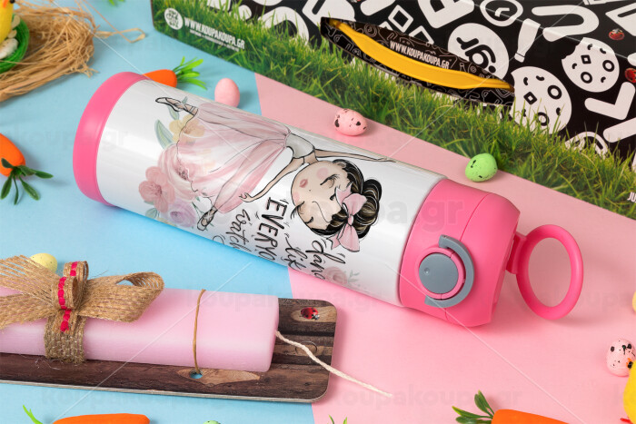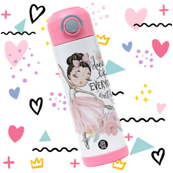 Dance Like everyone's watching, Πασχαλινή Λαμπάδα με Παιδικό παγούρι θερμό, ανοξείδωτο, με καλαμάκι ασφαλείας, ΡΟΖ (500ml)