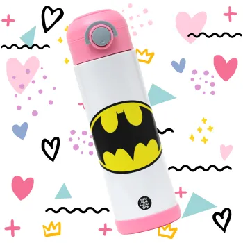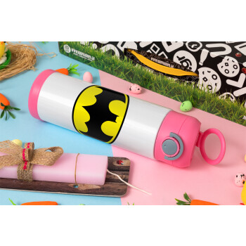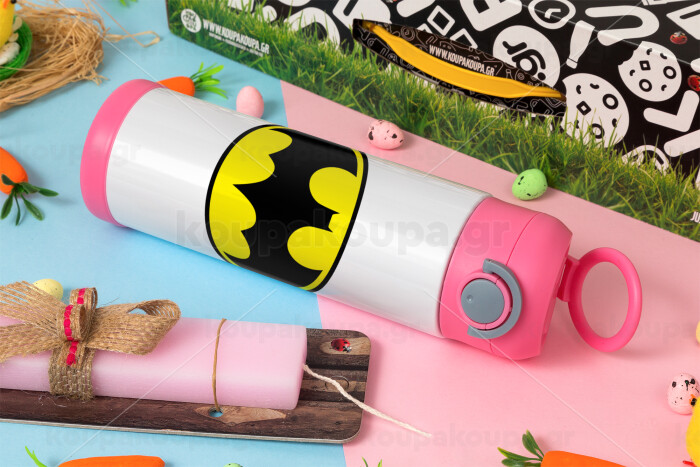 Batman, Πασχαλινή Λαμπάδα με Παιδικό παγούρι θερμό, ανοξείδωτο, με καλαμάκι ασφαλείας, ΡΟΖ (500ml)