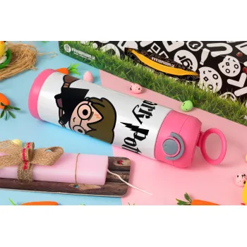 Harry potter kid, Πασχαλινή Λαμπάδα με Παιδικό παγούρι θερμό, ανοξείδωτο, με καλαμάκι ασφαλείας, ΡΟΖ (500ml)