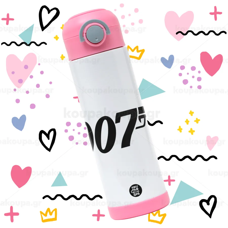 James Bond 007, Πασχαλινή Λαμπάδα με Παιδικό παγούρι θερμό, ανοξείδωτο, με καλαμάκι ασφαλείας, ΡΟΖ (500ml)