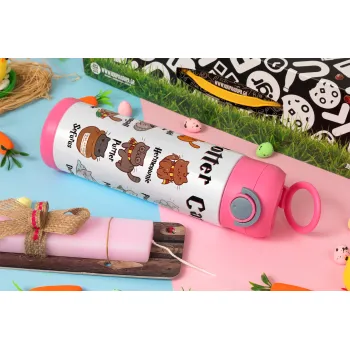 Potter Cats, Πασχαλινή Λαμπάδα με Παιδικό παγούρι θερμό, ανοξείδωτο, με καλαμάκι ασφαλείας, ΡΟΖ (500ml)