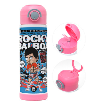 Rocky Balboa, Πασχαλινή Λαμπάδα με Παιδικό παγούρι θερμό, ανοξείδωτο, με καλαμάκι ασφαλείας, ΡΟΖ (500ml)