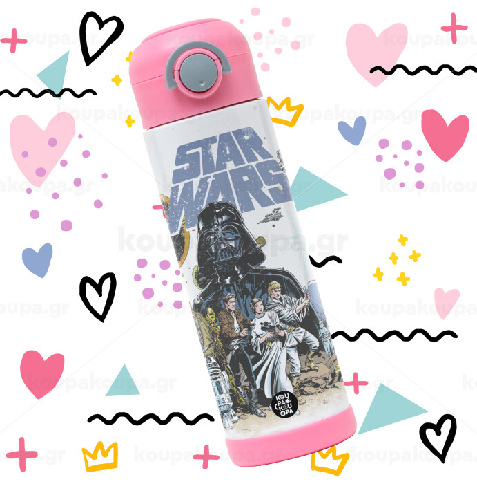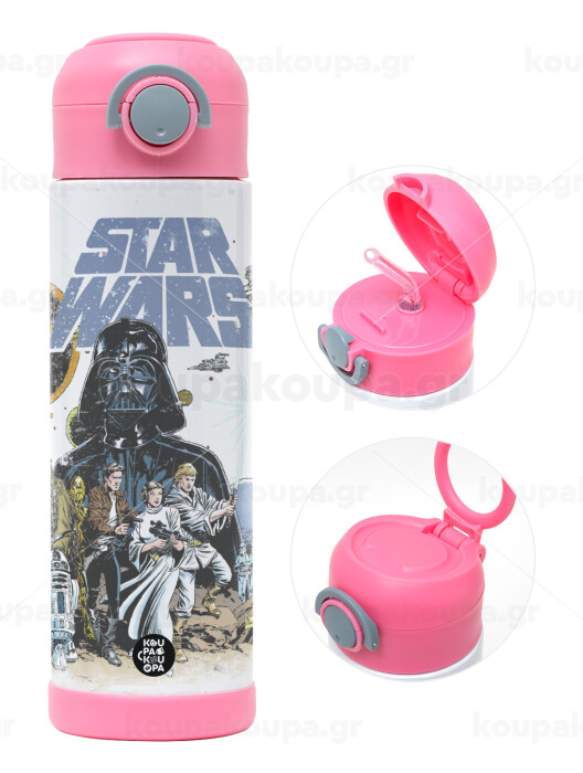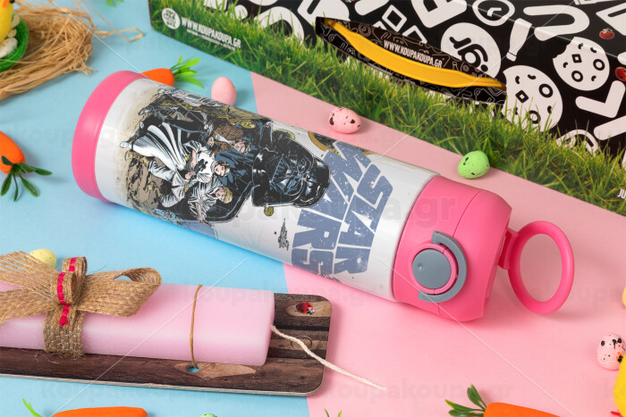 Star Wars, Πασχαλινή Λαμπάδα με Παιδικό παγούρι θερμό, ανοξείδωτο, με καλαμάκι ασφαλείας, ΡΟΖ (500ml)