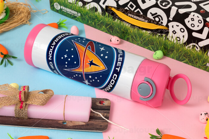 Starfleet command, Πασχαλινή Λαμπάδα με Παιδικό παγούρι θερμό, ανοξείδωτο, με καλαμάκι ασφαλείας, ΡΟΖ (500ml)