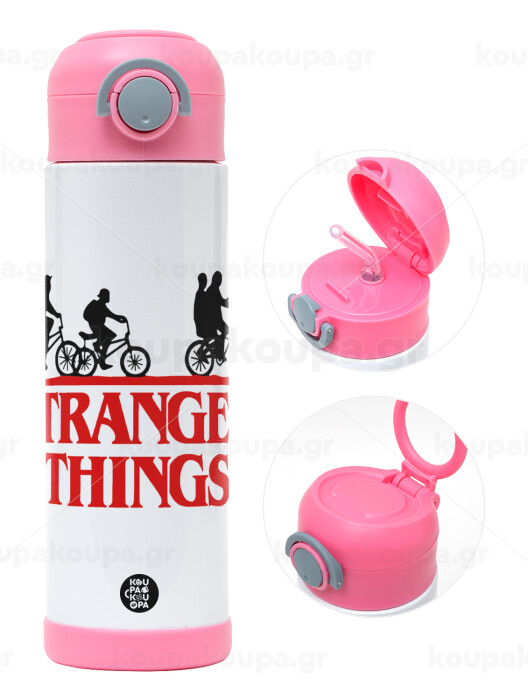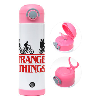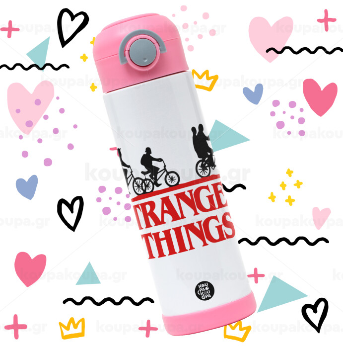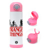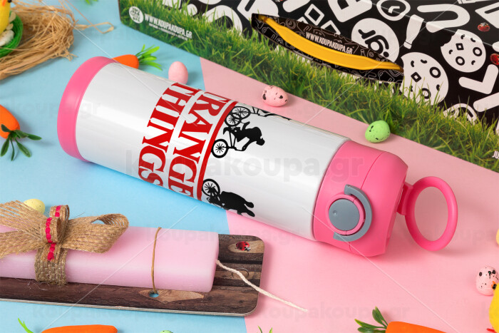 Stranger Things red, Πασχαλινή Λαμπάδα με Παιδικό παγούρι θερμό, ανοξείδωτο, με καλαμάκι ασφαλείας, ΡΟΖ (500ml)