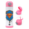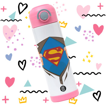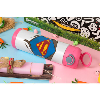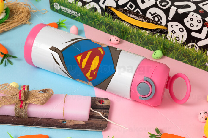 Superman hands, Πασχαλινή Λαμπάδα με Παιδικό παγούρι θερμό, ανοξείδωτο, με καλαμάκι ασφαλείας, ΡΟΖ (500ml)