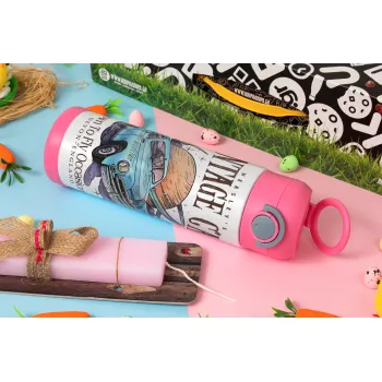 Wizard Flying Car, Πασχαλινή Λαμπάδα με Παιδικό παγούρι θερμό, ανοξείδωτο, με καλαμάκι ασφαλείας, ΡΟΖ (500ml)