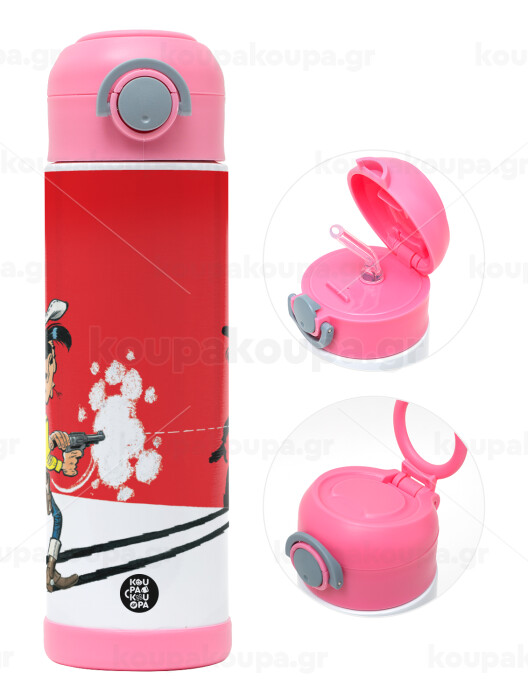 Λούκυ Λουκ σκιές, Πασχαλινή Λαμπάδα με Παιδικό παγούρι θερμό, ανοξείδωτο, με καλαμάκι ασφαλείας, ΡΟΖ (500ml)