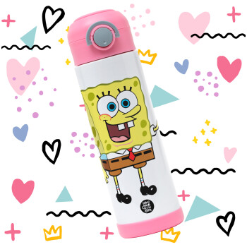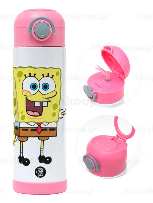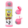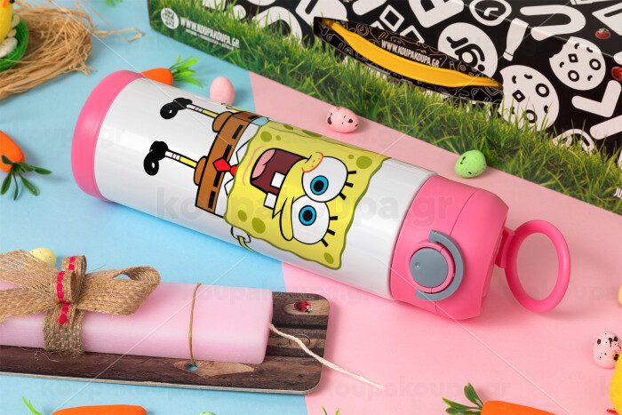 Μπομπ Σφουγγαράκης character, Πασχαλινή Λαμπάδα με Παιδικό παγούρι θερμό, ανοξείδωτο, με καλαμάκι ασφαλείας, ΡΟΖ (500ml)
