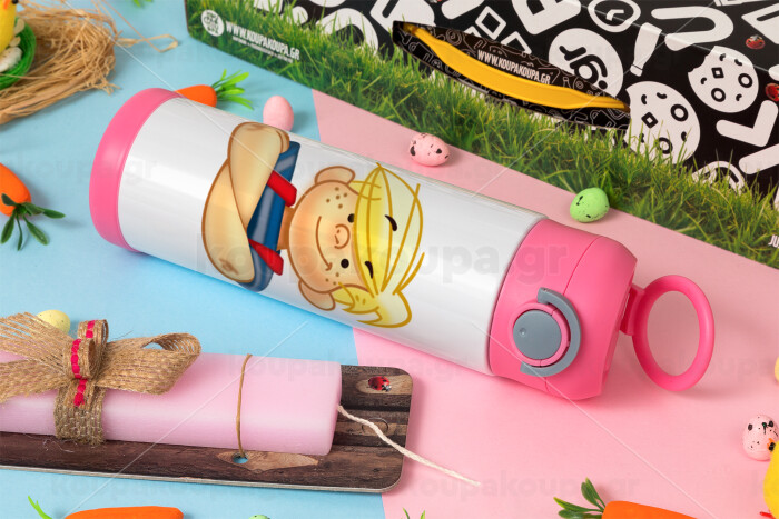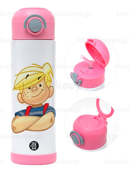 Ντένις ο τρομερός, Πασχαλινή Λαμπάδα με Παιδικό παγούρι θερμό, ανοξείδωτο, με καλαμάκι ασφαλείας, ΡΟΖ (500ml)