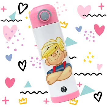 Ντένις ο τρομερός, Πασχαλινή Λαμπάδα με Παιδικό παγούρι θερμό, ανοξείδωτο, με καλαμάκι ασφαλείας, ΡΟΖ (500ml)