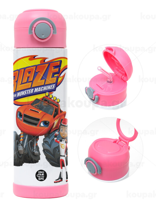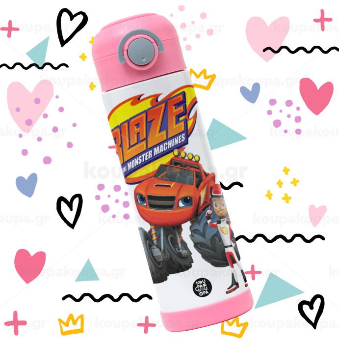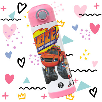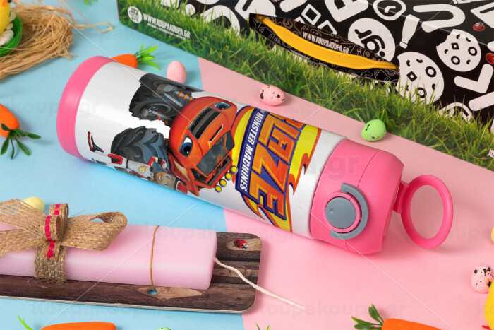 Ο Μπλέιζ και οι Φίλοι του, Πασχαλινή Λαμπάδα με Παιδικό παγούρι θερμό, ανοξείδωτο, με καλαμάκι ασφαλείας, ΡΟΖ (500ml)