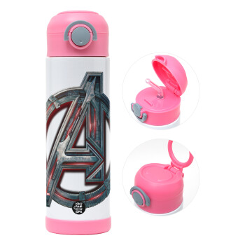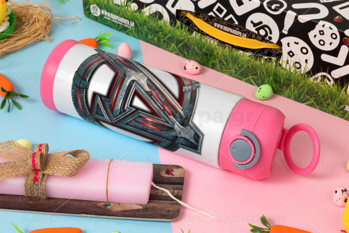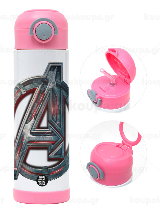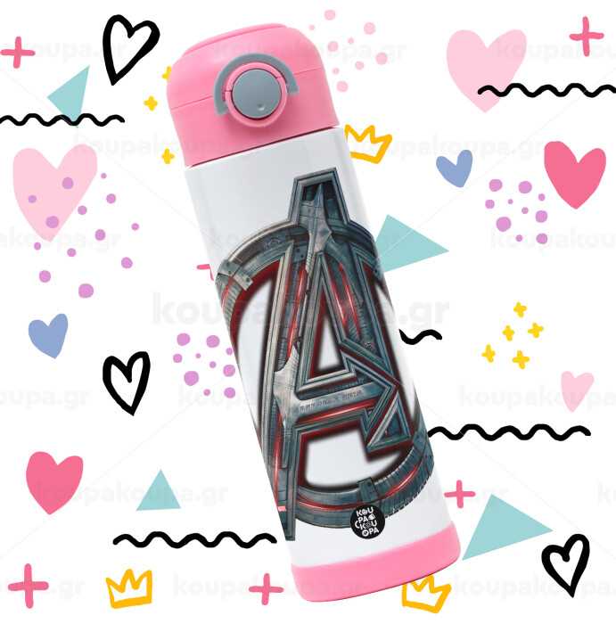Avengers, Πασχαλινή Λαμπάδα με Παιδικό παγούρι θερμό, ανοξείδωτο, με καλαμάκι ασφαλείας, ΡΟΖ (500ml)