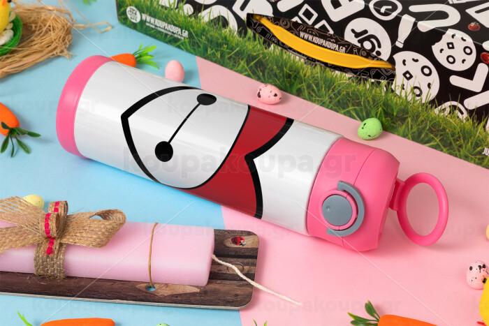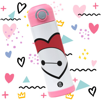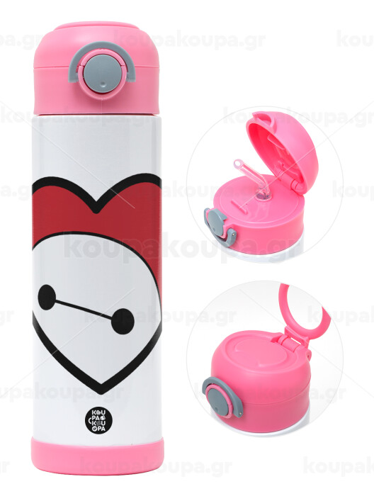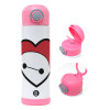 Baymax heart, Πασχαλινή Λαμπάδα με Παιδικό παγούρι θερμό, ανοξείδωτο, με καλαμάκι ασφαλείας, ΡΟΖ (500ml)