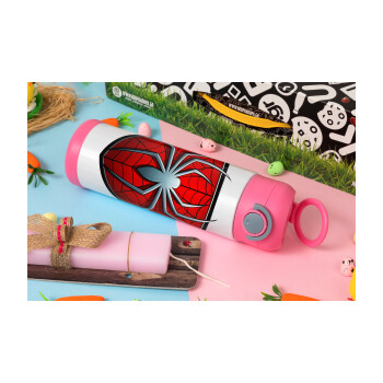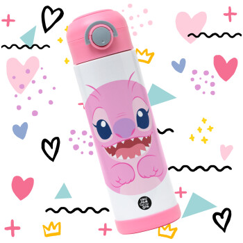 Lilo & Stitch Angel pink, Πασχαλινή Λαμπάδα με Παιδικό παγούρι θερμό, ανοξείδωτο, με καλαμάκι ασφαλείας, ΡΟΖ (500ml)