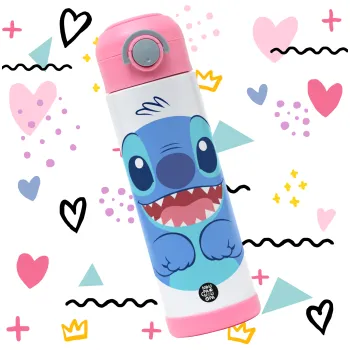 Lilo & Stitch blue, Πασχαλινή Λαμπάδα με Παιδικό παγούρι θερμό, ανοξείδωτο, με καλαμάκι ασφαλείας, ΡΟΖ (500ml)