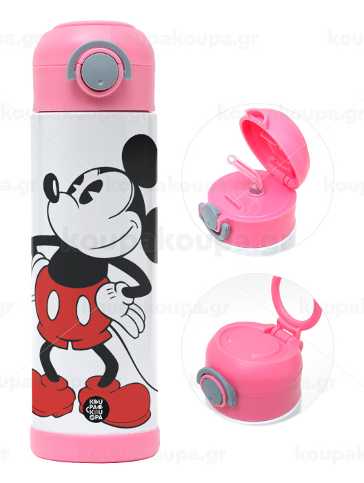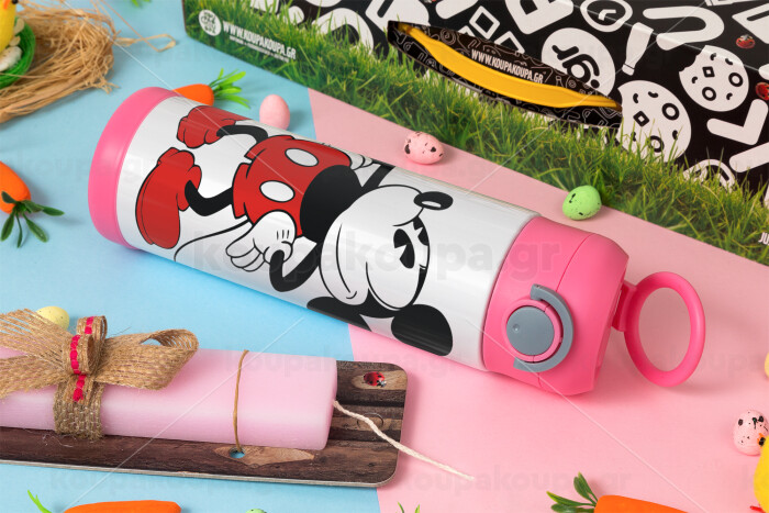 Mickey Classic, Πασχαλινή Λαμπάδα με Παιδικό παγούρι θερμό, ανοξείδωτο, με καλαμάκι ασφαλείας, ΡΟΖ (500ml)