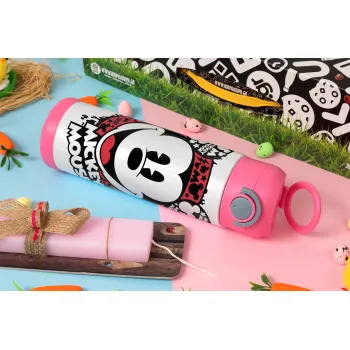 Mickey Mouse, Πασχαλινή Λαμπάδα με Παιδικό παγούρι θερμό, ανοξείδωτο, με καλαμάκι ασφαλείας, ΡΟΖ (500ml)