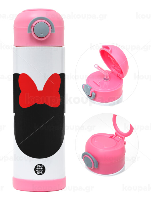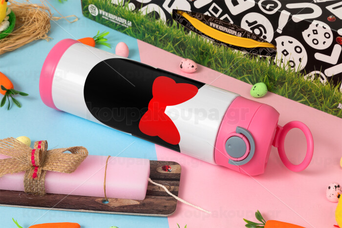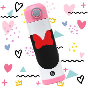 Minnie head, Πασχαλινή Λαμπάδα με Παιδικό παγούρι θερμό, ανοξείδωτο, με καλαμάκι ασφαλείας, ΡΟΖ (500ml)