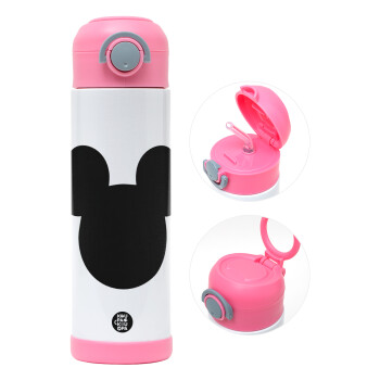 mouse man, Πασχαλινή Λαμπάδα με Παιδικό παγούρι θερμό, ανοξείδωτο, με καλαμάκι ασφαλείας, ΡΟΖ (500ml)