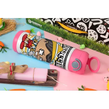 Pinocchio, Πασχαλινή Λαμπάδα με Παιδικό παγούρι θερμό, ανοξείδωτο, με καλαμάκι ασφαλείας, ΡΟΖ (500ml)