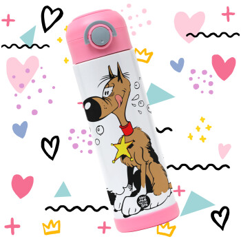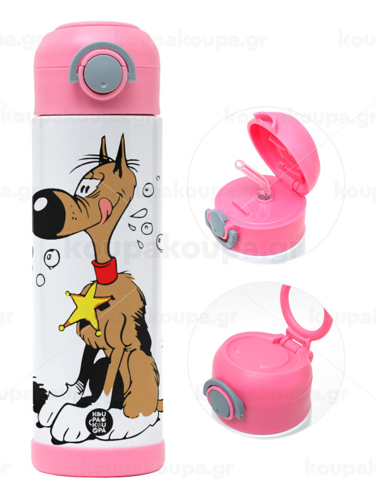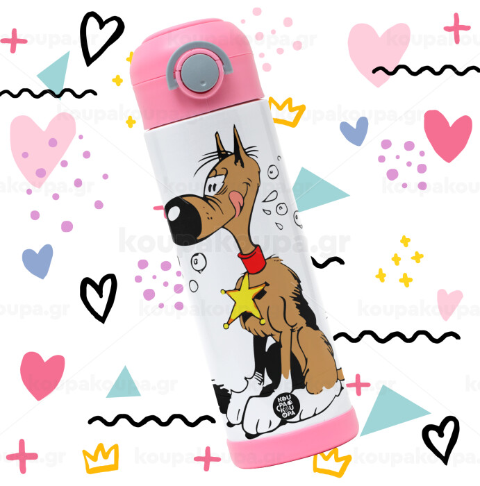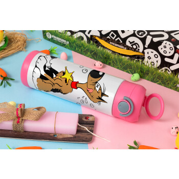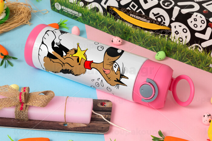 Rantanplan (Ρανταπλάν), Πασχαλινή Λαμπάδα με Παιδικό παγούρι θερμό, ανοξείδωτο, με καλαμάκι ασφαλείας, ΡΟΖ (500ml)