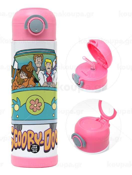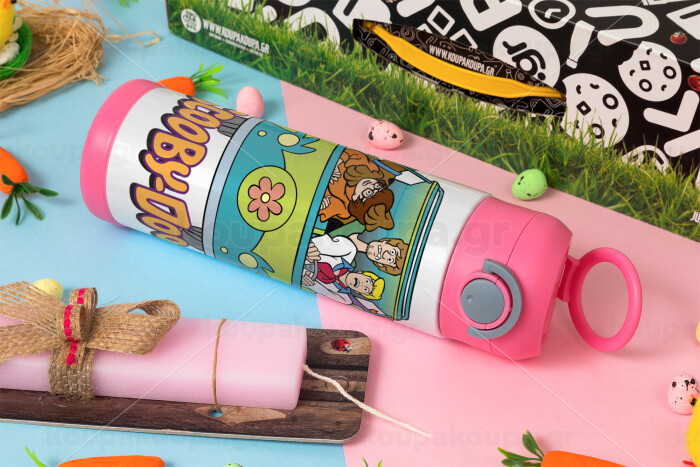 Scooby Doo car, Πασχαλινή Λαμπάδα με Παιδικό παγούρι θερμό, ανοξείδωτο, με καλαμάκι ασφαλείας, ΡΟΖ (500ml)