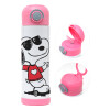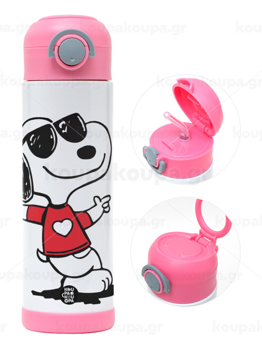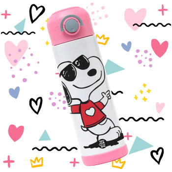 Snoopy καρδούλα, Πασχαλινή Λαμπάδα με Παιδικό παγούρι θερμό, ανοξείδωτο, με καλαμάκι ασφαλείας, ΡΟΖ (500ml)