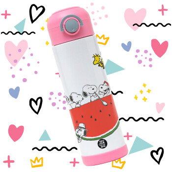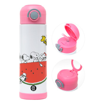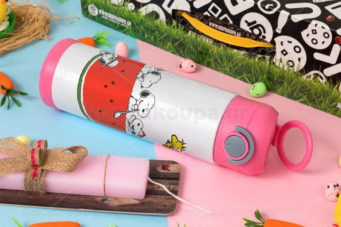 Snoopy summer, Πασχαλινή Λαμπάδα με Παιδικό παγούρι θερμό, ανοξείδωτο, με καλαμάκι ασφαλείας, ΡΟΖ (500ml)