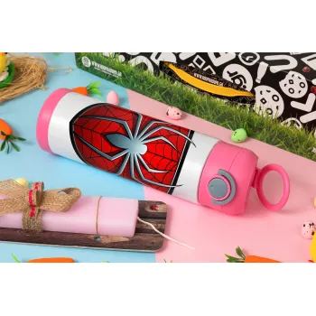 Spider-man, Πασχαλινή Λαμπάδα με Παιδικό παγούρι θερμό, ανοξείδωτο, με καλαμάκι ασφαλείας, ΡΟΖ (500ml)