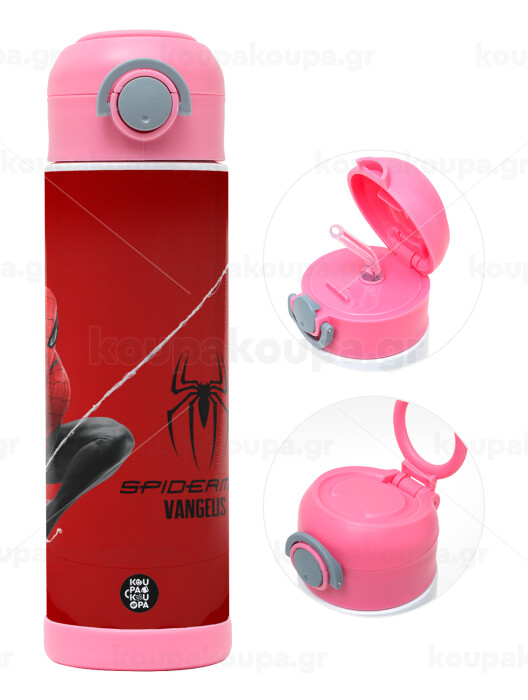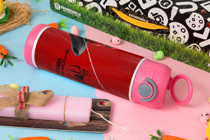 Spiderman, Πασχαλινή Λαμπάδα με Παιδικό παγούρι θερμό, ανοξείδωτο, με καλαμάκι ασφαλείας, ΡΟΖ (500ml)