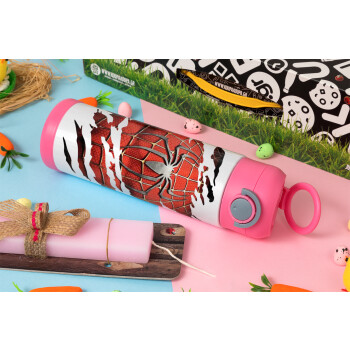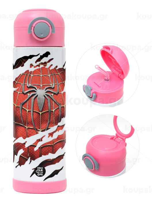 Spiderman cracked, Πασχαλινή Λαμπάδα με Παιδικό παγούρι θερμό, ανοξείδωτο, με καλαμάκι ασφαλείας, ΡΟΖ (500ml)
